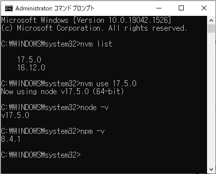 nvm use 17.5.0node.js 버전 확인